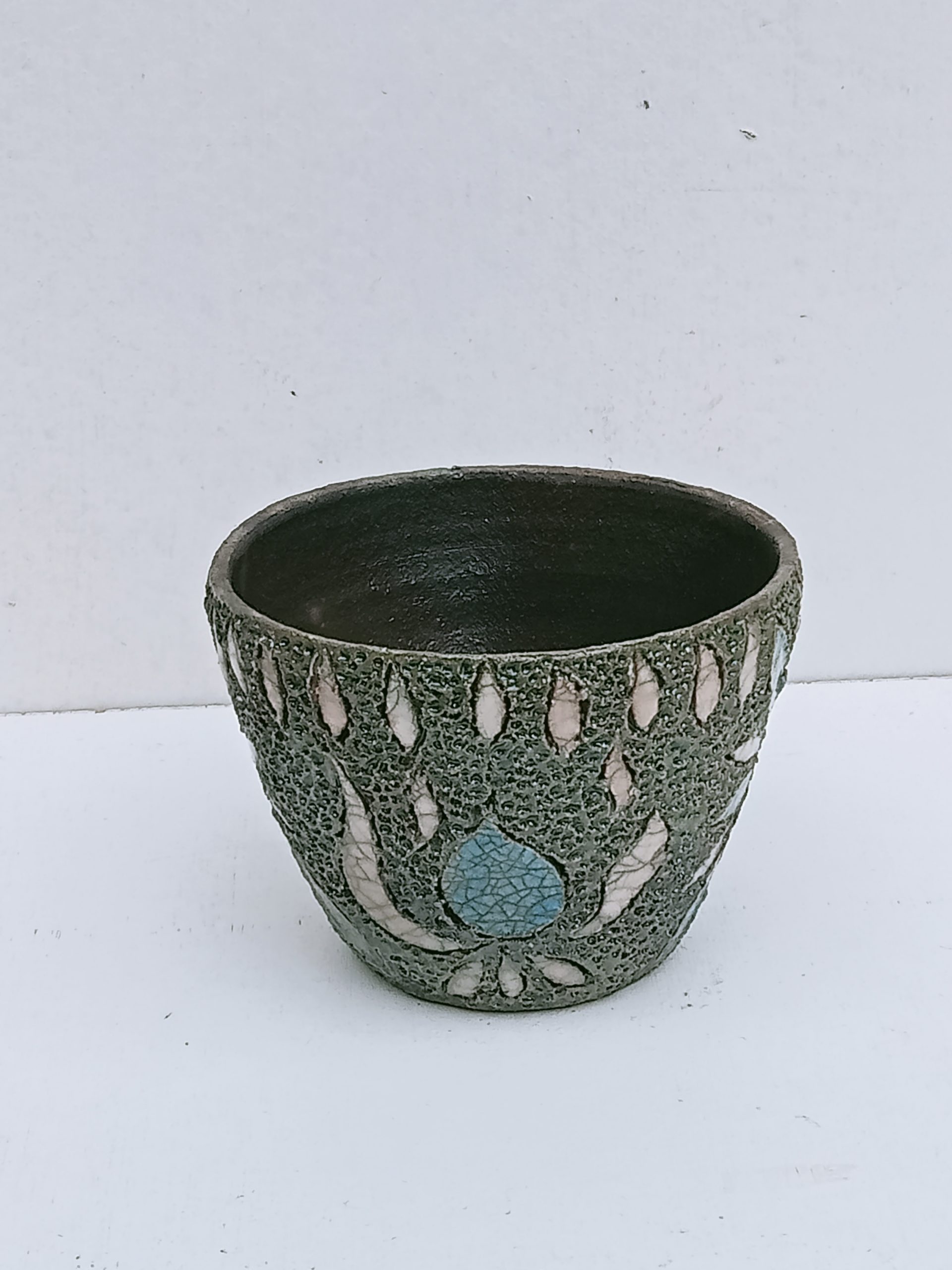 Ce cache pot en céramique , façonné selon la méthode traditionnelle du raku, est une pièce artisanale ce cache pot présente des craquelures subtiles et des nuances fumées qui font de chaque pièce une œuvre unique.